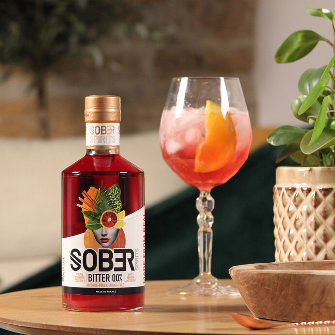 Au cœur de la France, dans une distillerie fondée en 1875, le distillat sans alcool est ensuite assemblé avec différents fruits, substances végétales et racines. Les infusions et macérations successives de substances et d'extraits végétaux donnent naissance à un apéritif bitter au bouquet extrêmement aromatique. Le Sober Spirits Bitter se caractérise par des arômes intenses et typiques des apéritifs italiens comme l'orange sanguine, l'angélique, des notes fraîches de genièvre et une finale légèrement boisée et épicée.