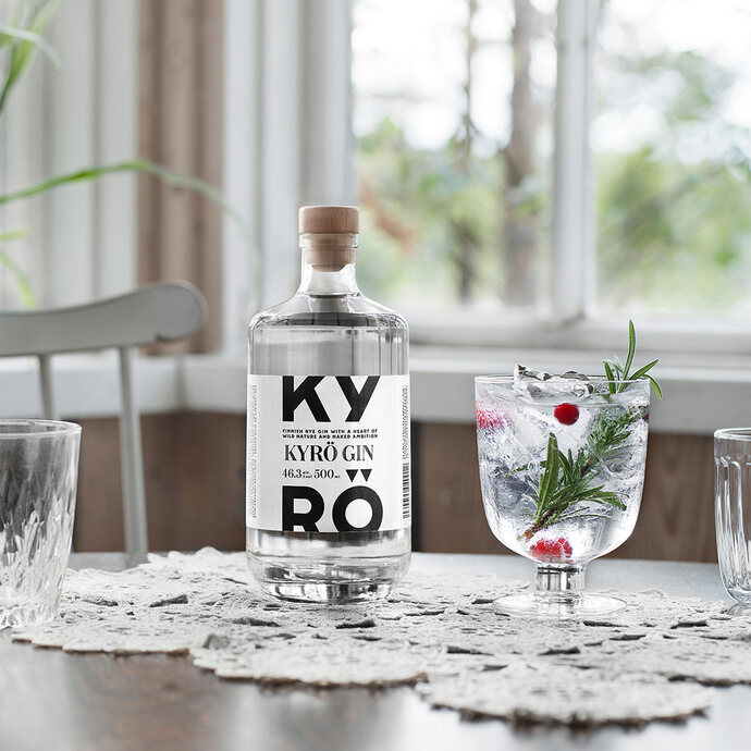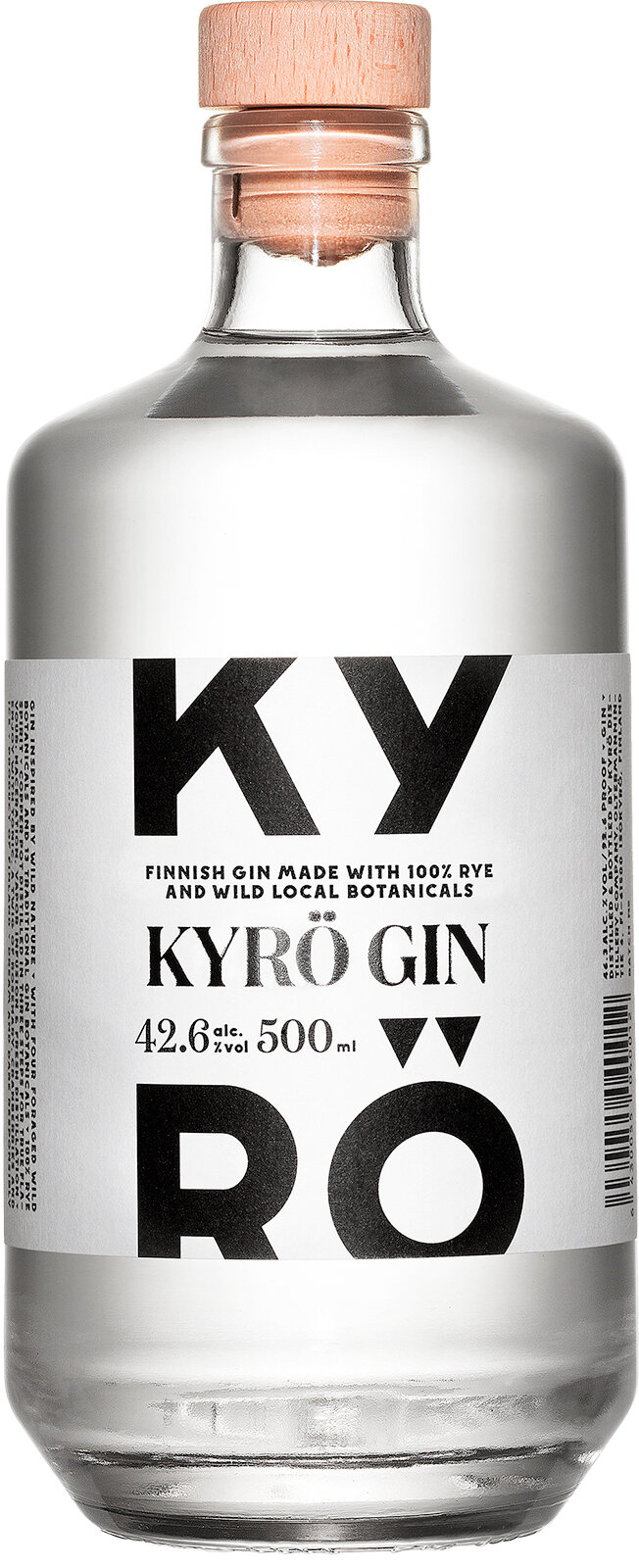 Le cœur aromatique des produits de la distillerie Kyrö se trouve dans la nature sauvage de la Finlande. Le gin Kyrö est fabriqué à 100 % à partir de seigle, de quatre plantes sauvages locales, dont le bouleau et la reine des prés, et de 13 herbes aromatiques traditionnelles utilisées pour le gin. Il est distillé en trois étapes dans des alambics en cuivre : macération, infusion à la vapeur et distillation à froid.