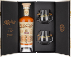 Le coffret cadeau contient une bouteille de 70 cl de Ron Millonario Reserva Especial Número 15 et deux élégants verres à rhum estampillés du logo Millonario.