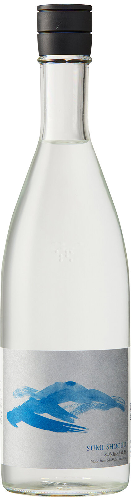 Le Shochu Masumi Sumi est un shochu japonais rare, distillé à partir de marc de saké Masumi et mélangé à de l'eau de source provenant des Alpes japonaises.