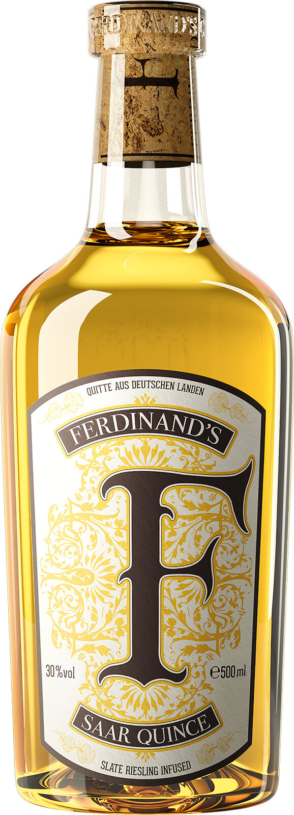 Das aus eigenem Getreide (Weizen, Roggen und Dinkel) gewonnene Rohdestillat wird mehrfach destilliert und bildet die Grundlage für die handverlesenen Kräuter, Gewürze und Früchte, die sorgfältig mazeriert werden. Die zusätzliche Verwendung einer Dampfinfusion von erntefrischen Kräutern verleiht dem Saar Quince einzigartige frische, blumige Noten, die mit einer präzisen Dosage von Riesling-Trauben abgerundet werden. Nach einer 12-wöchigen Ruhezeit in Steingut Gefässen wird Ferdinand’s Saar Quince mit frisch aufgeschnittenen Quitten mazeriert.