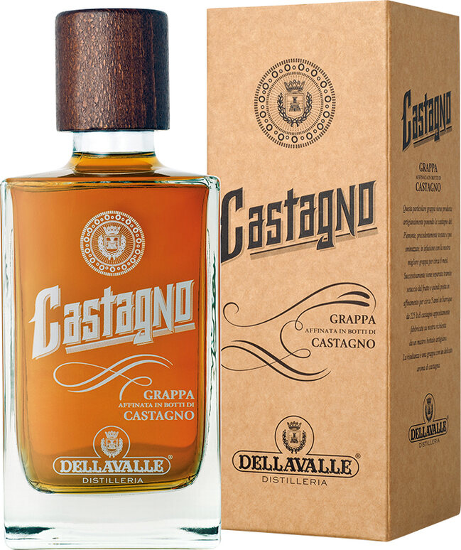 Bei diesem besonderen Grappa ist die Produktion reine Handarbeit. Zunächst werden piemontesische Kastanien geröstet, dann zerkleinert und schliesslich für etwa sechs Monate in den besten Grappa von Dellavalle eingelegt. Anschliessend werden die Kastanien mittels eines Siebs wieder aus dem Destillat entnommen. Der aus Barbera-Trauben hergestellte Grappa reift fünf Jahre lang in Kastanienholzfässern mit einem Volumen von 225 Litern. Diese wurden speziell für Dellavalle von einem Küfer angefertigt. Das Ergebnis ist ein Grappa mit einem delikaten Kastanienaroma.
